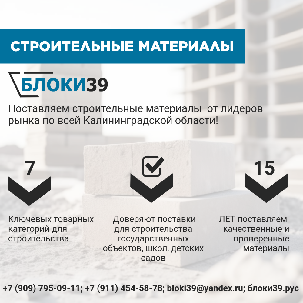 Для получения дополнительной информации о нашей продукции и условиях сотрудничества, пожалуйста, свяжитесь с нами. Ваш надежный партнер в строительстве – Блоки39!